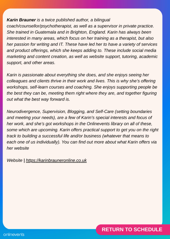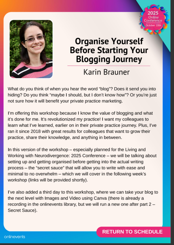 Visit this post for neurodivergence workshops on-demand, and click here for more workshops I’ve presented in the past on various topics.